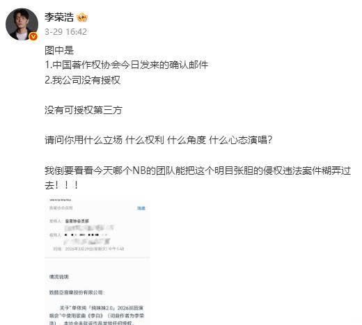 李荣浩连发四问:求教你用什么态度、什么职权、什么角度、什么心态演唱?