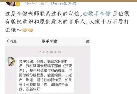 李健莫得烧毁,转而在微博上私信许飞。