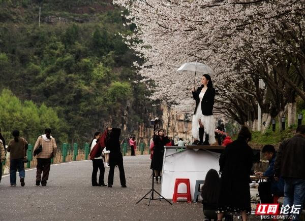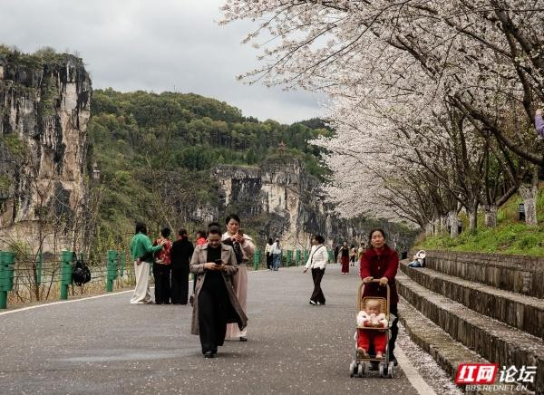 3月28日,连绵晦暗暂歇,天外透出若干晴意。我与几位爱文、惜花、更寄望春日的友东谈主,听闻湘西土家眷苗族自治州泸溪县樱花烂漫盛放,好意思不堪收,便驱车赶赴。行至樱花林下,只见泸溪县沅水画壁景区被一派柔顺的粉色浸染。