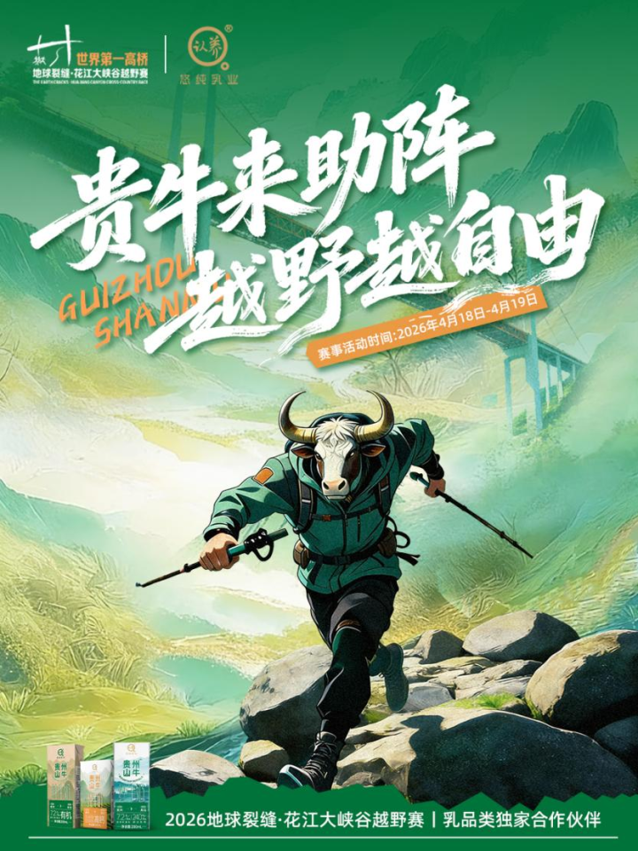 贵州省安顺市关岭县花江镇,寰球第一高桥花江峡谷大桥的巍峨与“地球迤逦”花江大峡谷的壮好意思兴盛交相照映,一场交融当然奇不雅、明白心情与品牌温度的越野赛事行将启幕。2026年4月18日-19日,“寰球第一高桥 2026地球迤逦·花江大峡谷越野赛”将在这里震荡开赛,算作赛事乳品类独家合营伙伴,悠纯乳业将携“贵州山牛”系列家具深度参与,为这场“桥旅体”跨界现实注入高原鲜美能源。